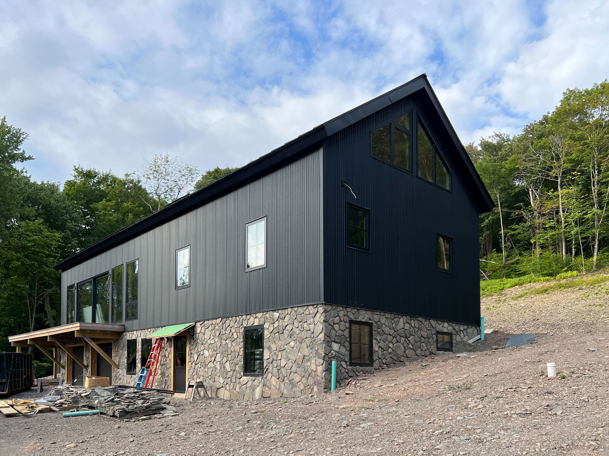 Clients love active sports, nature and crafts. The initial brief called for a house of about 3000 sq.ft. (280 sq.m.) with basement and loft, large kitchen (clients love cooking), workshop with transit area, large master bedroom with bath and a second ligh area. It was also needed to make storage for equipment such as bicycles, skis, etc., pantry and guest bedrooms with an office.